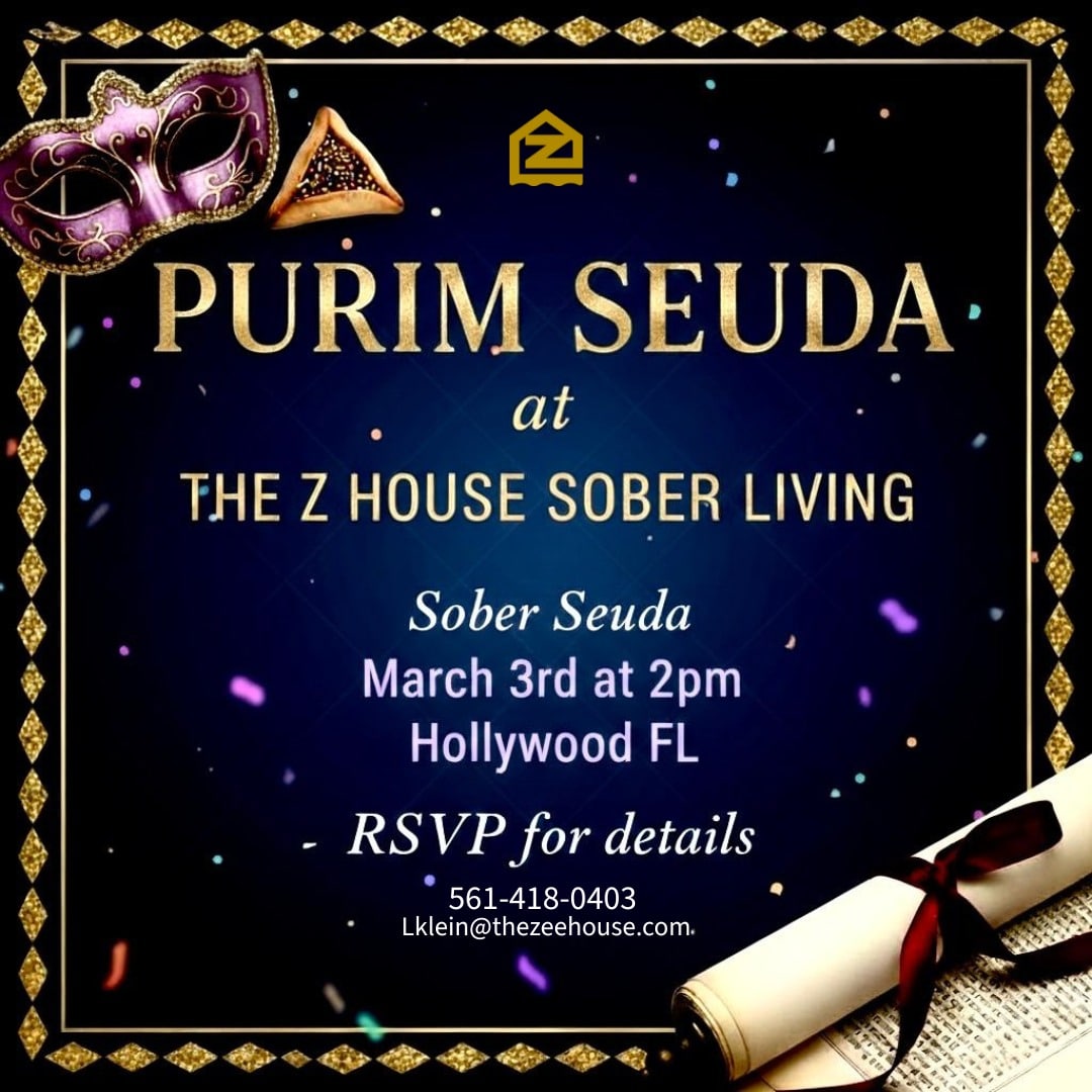 A joyful and welcoming sober Purim celebration for Jewish men in recovery, hosted by the Z House sober living.