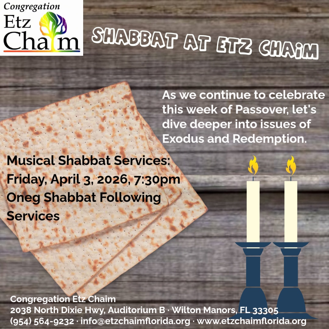 CHM Pesach 5786 April 3 2026 March 24, 2026 ← Shabbat Services and Oneg Shabbat – Congregation Etz Chaim, Wilton Manors