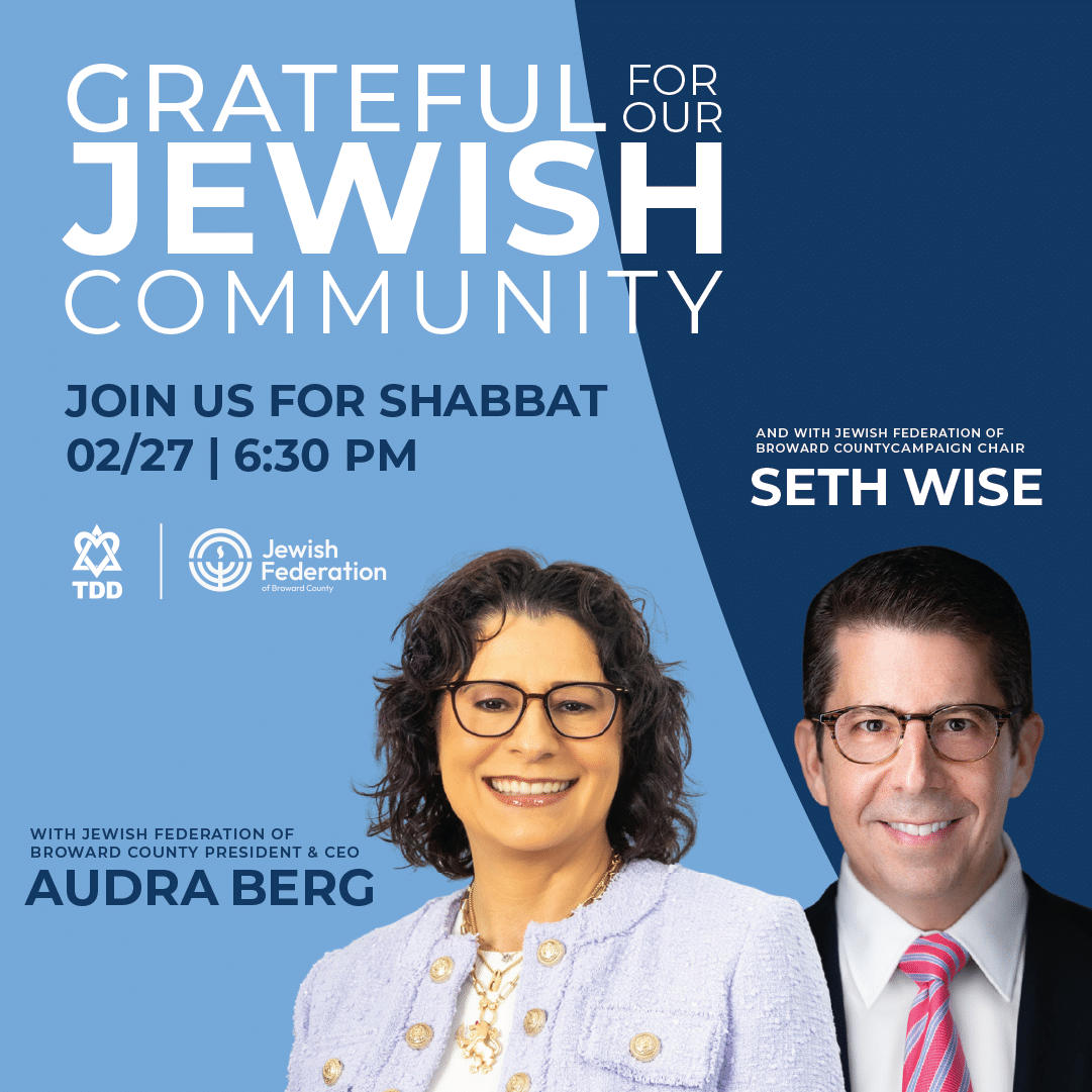 Temple Dor Dorim Shabbat featuring Audra Berg, President and CEO & Seth Wise, Campaign Chair of the Broward Jewish Federation
