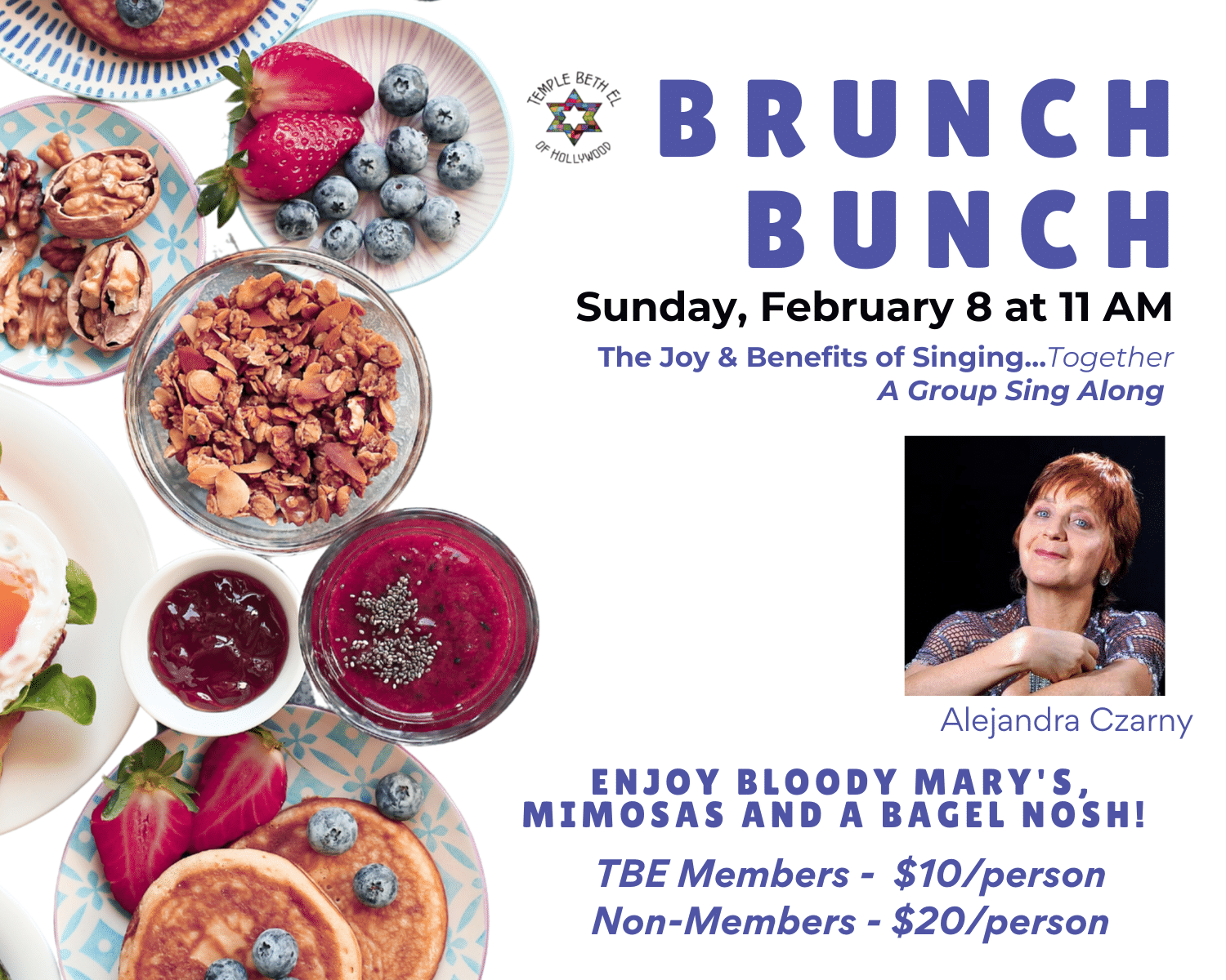Brunch Bunch: A Joyful Morning of Song with Alejandra Czarny Join us on Sunday, February 8 at 11 AM for a fun and uplifting group sing-along led by the talented Alejandra Czarny. Together, we’ll explore how music can strengthen memory, lift our spirits, and bring us closer as a community. From timeless classics to meaningful…